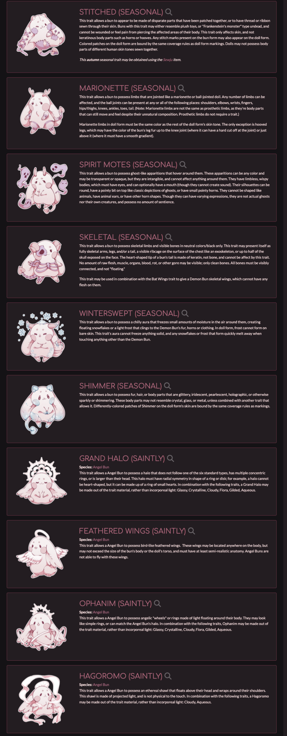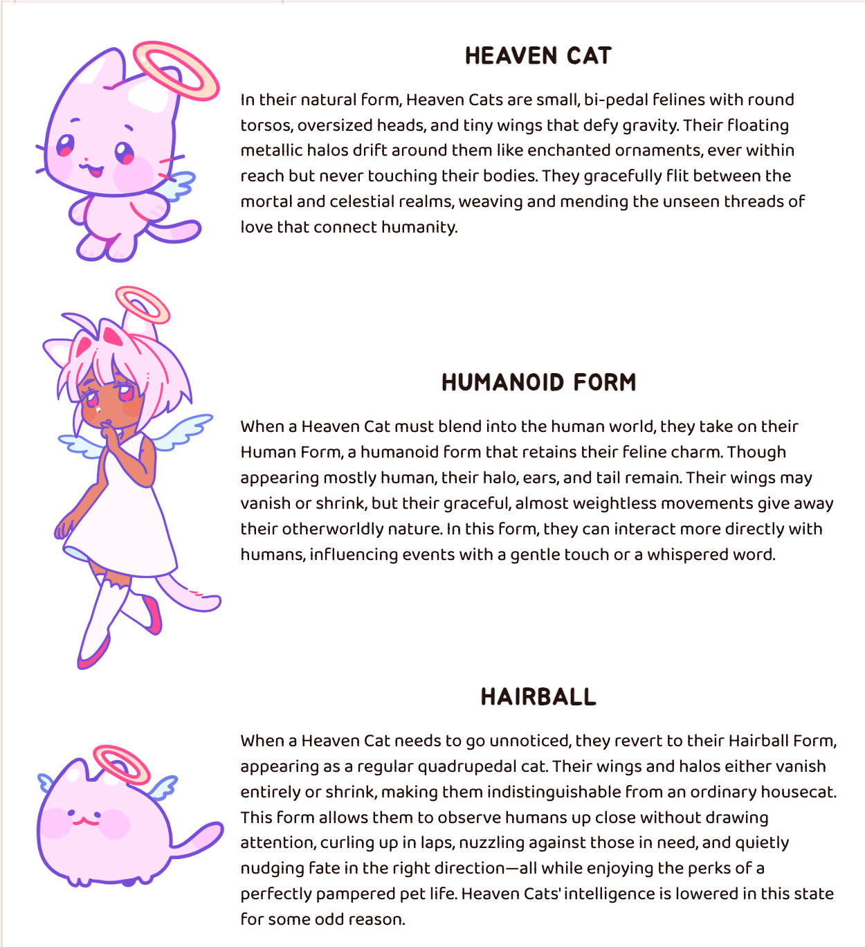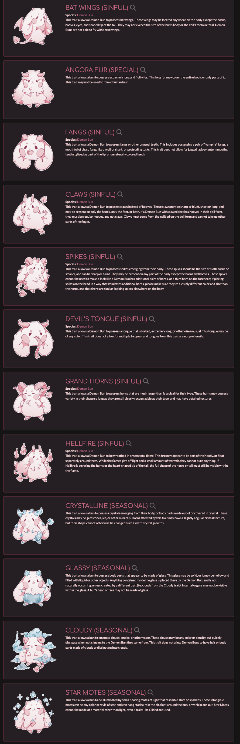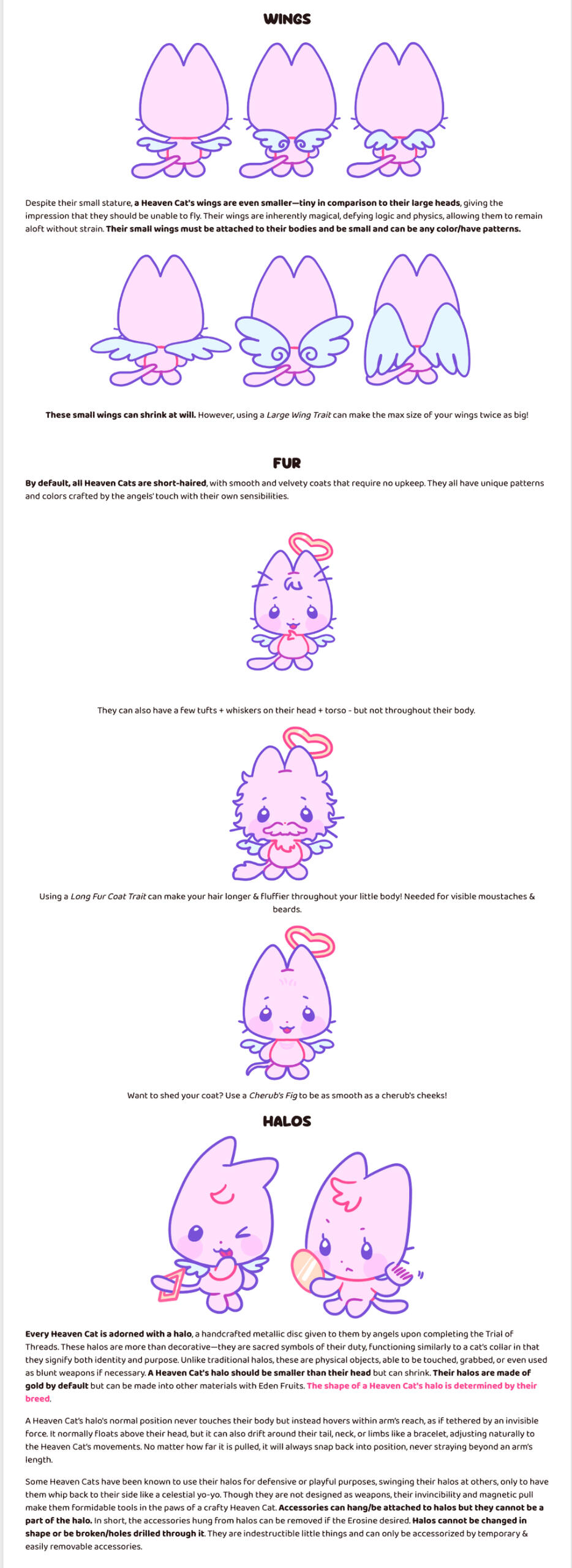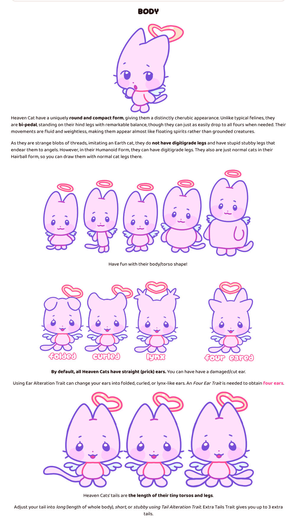 NOTICE: Traits are much more flexible in heaven cats than in demon buns. Feel free to use more creative liberty with these.