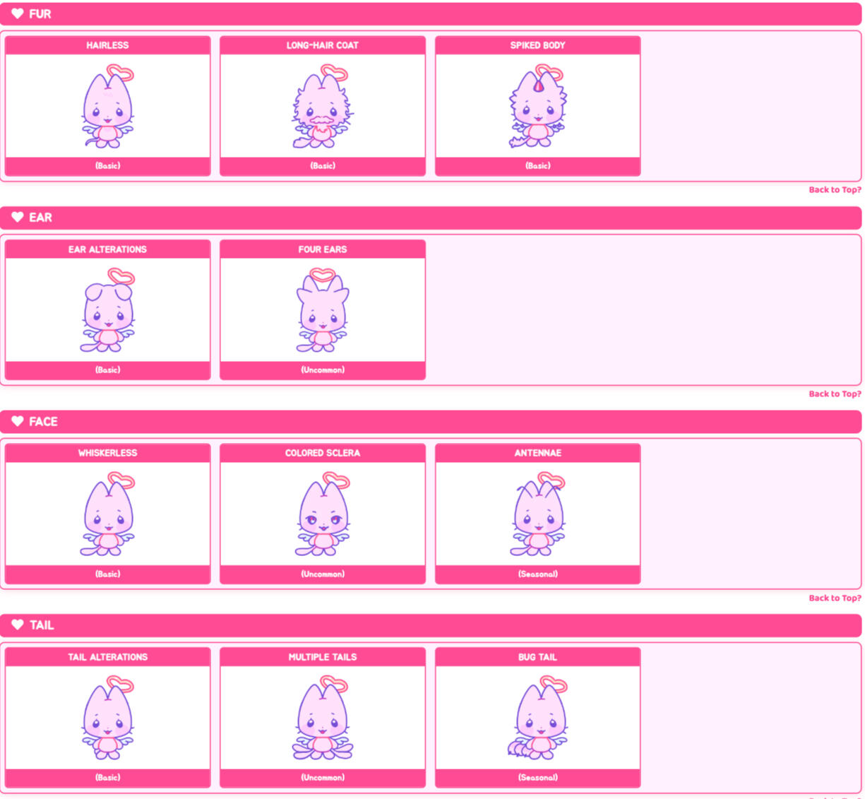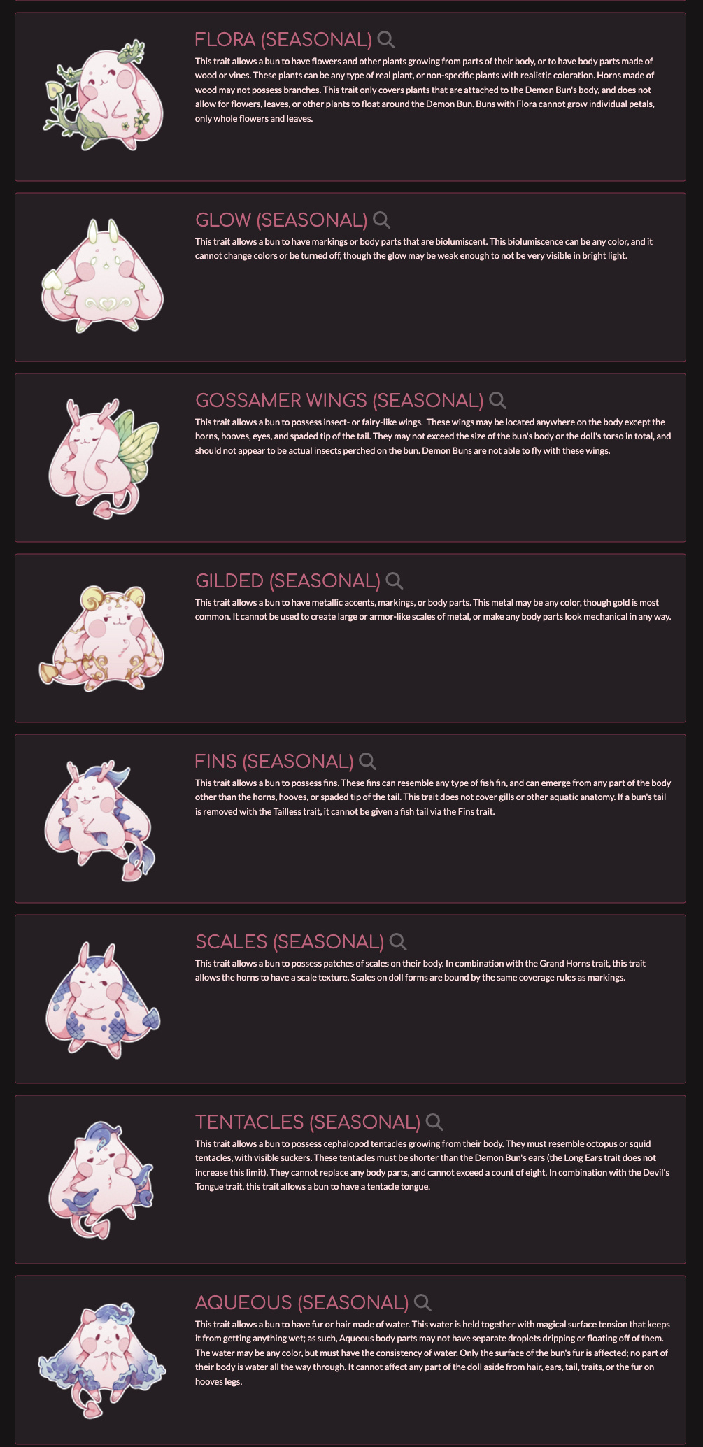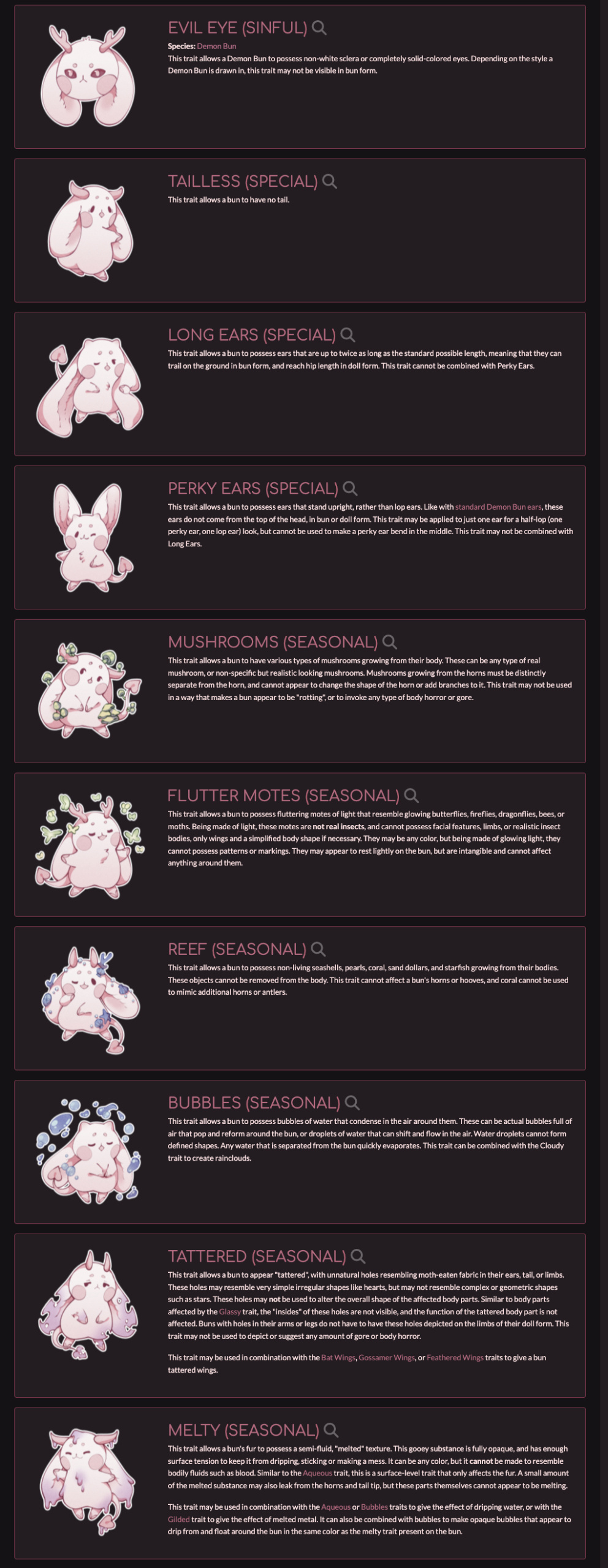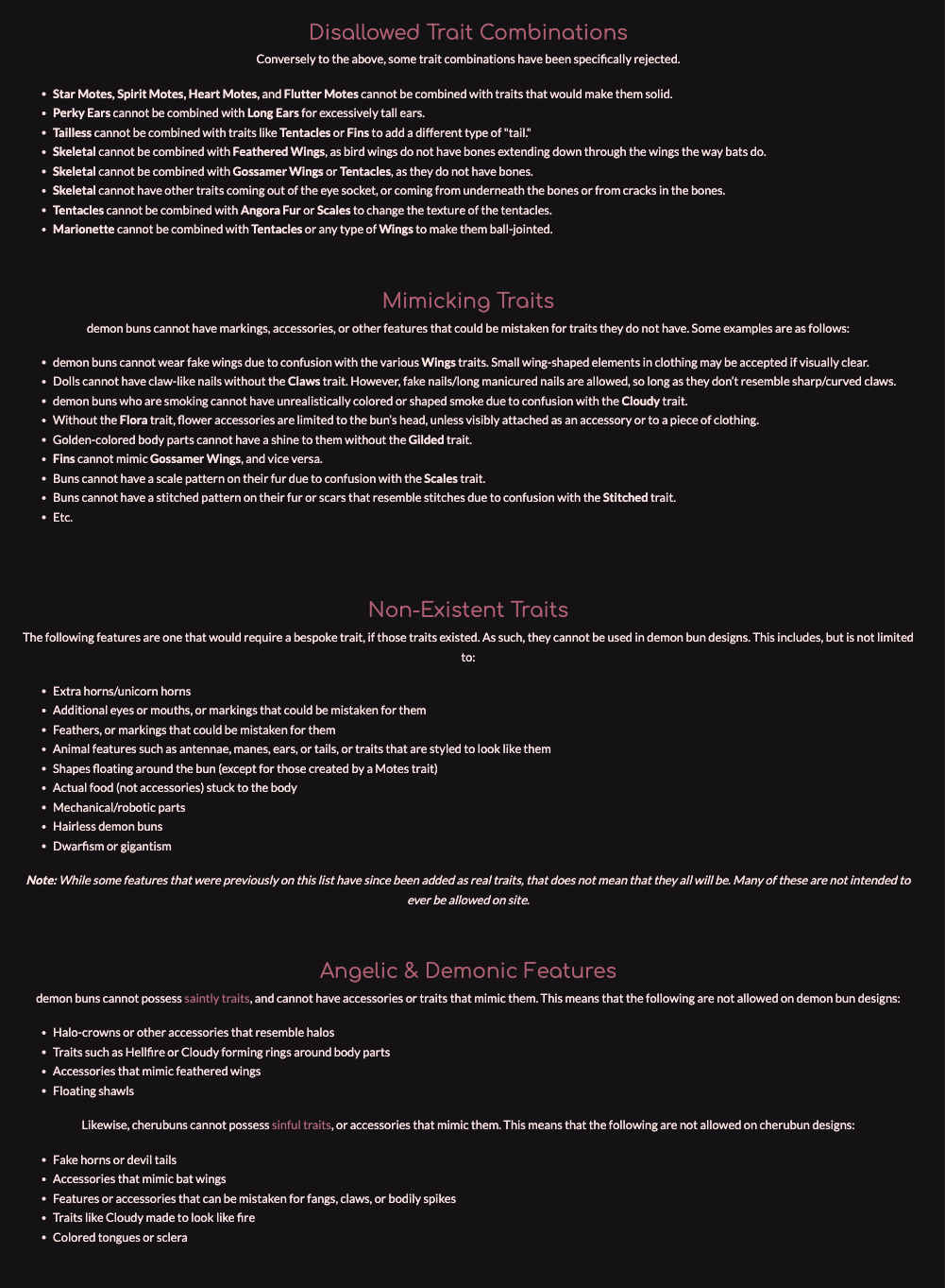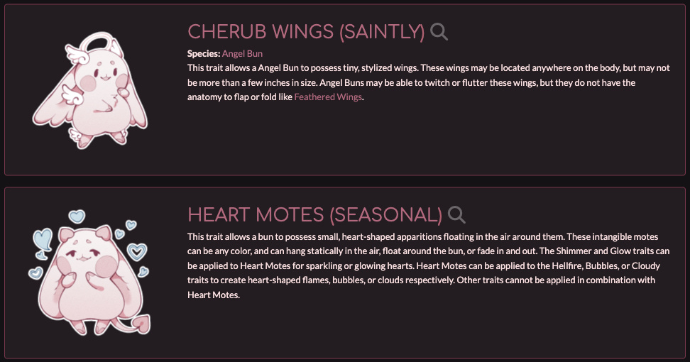 NOTICE: Traits are much more flexible in heaven cats than in demon buns. Feel free to use more creative liberty with these.